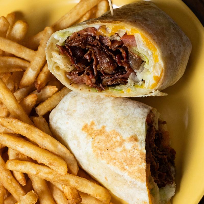 Flour tortilla, cheese blend, lettuce, tomato, bacon & mayo.