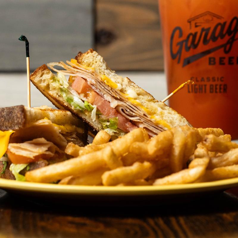 White bistro bread, hot deli turkey, lettuce, tomato, bacon, American cheese & mayo.